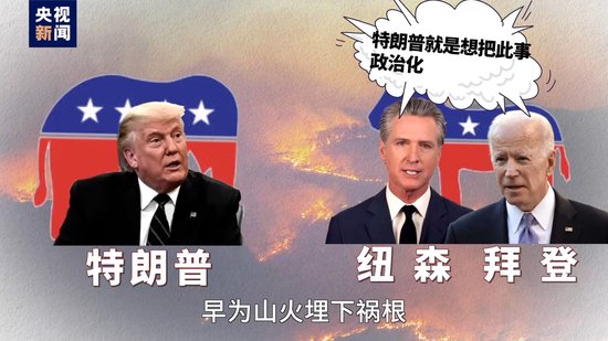 加州山火发生时,还是候任总统的特朗普抨击民主党不作为、指责加州州长纽森管理不善,纽森则连连发声力证“清白”;民主党这边则谴责特朗普政府无视气候变化、上个任期退出《巴黎协定》早为山火埋下祸根。共和党还以批准救灾款为要挟,逼民主党在债务上限问题上让步。