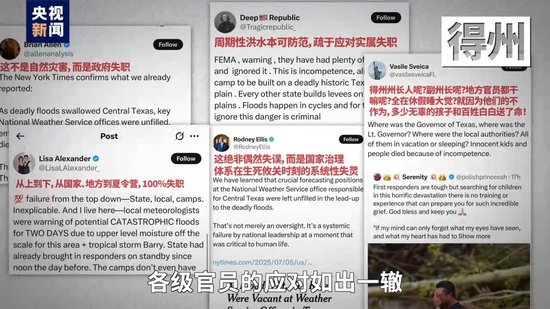 特朗普政府上台后,裁减了美国国家海洋和大气管理局及其下属国家气象局预算资金和数百名员工。国家气象局得州中部多个关键岗位自4月起空缺,包括重要的天气预警协调员。因此,多家美媒将此次洪水与特朗普政府大规模裁员相关联。但他的回应是: